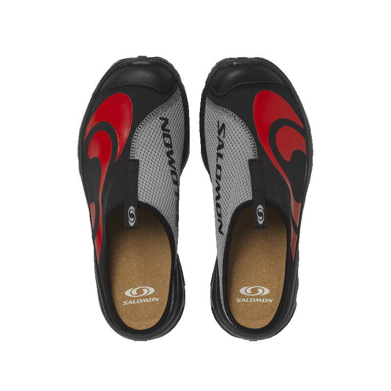 SALOMON RX Slide 3.0 Seasonal – Black / Alloy / Fiery Red: The RX SLIDE 3.0 SEASONAL is a revisited adaptation of a Salomon classic – the recovery shoe. Created to alleviate physical stress sensations in your feet, this RX SLIDE 3.0 is a lightweight and comfortable after-sports slip-on ideal for lounging around and getting serious about relaxation. Featuring an oversized version of archival branding.