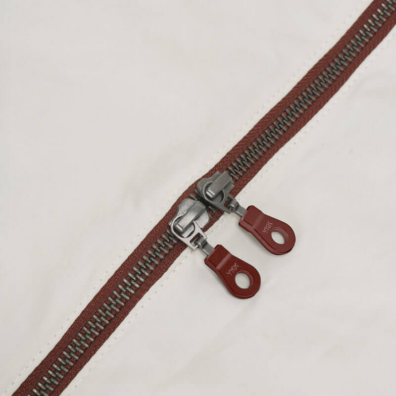 - 2-way YKK zipper extending from front to back