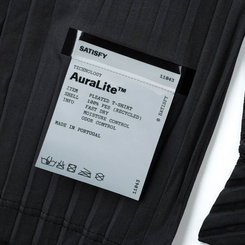 AuraLite™ is Satisfy’s silk-soft Japanese micro jersey. Built to hover around the body, pleats lift fabric from the skin, flexing with stride. As air flows through the channels, heat disperses, and friction fades. Weightless in feel. Each garment carries natural variations, resulting in a one-of-one piece. Distinctions emerge over time, deepening with wear and pleating.