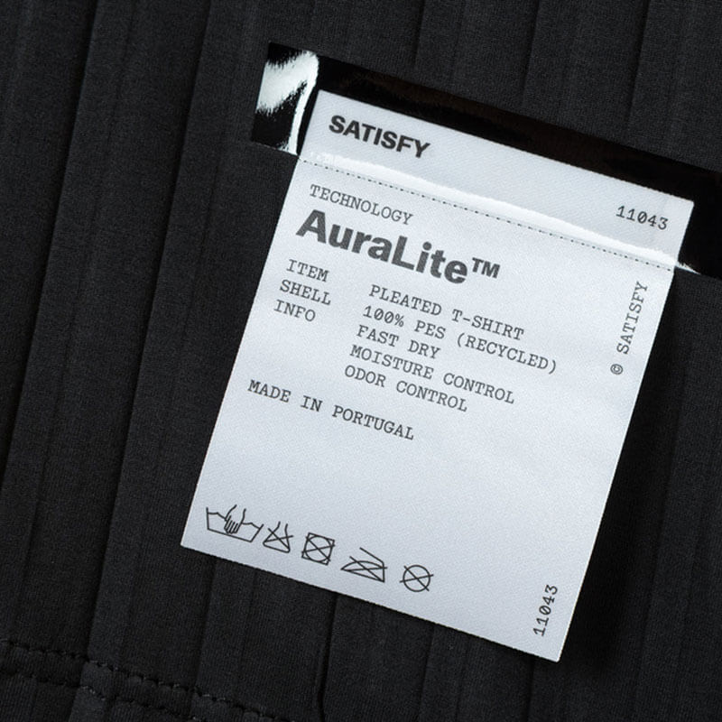 AuraLite™ is Satisfy’s silk-soft Japanese micro jersey. Built to hover around the body, pleats lift fabric from the skin, flexing with stride. As air flows through the channels, heat disperses, and friction fades. Weightless in feel. Each garment is individually pleated, making it unique and naturally evolving over time with subtle variations.