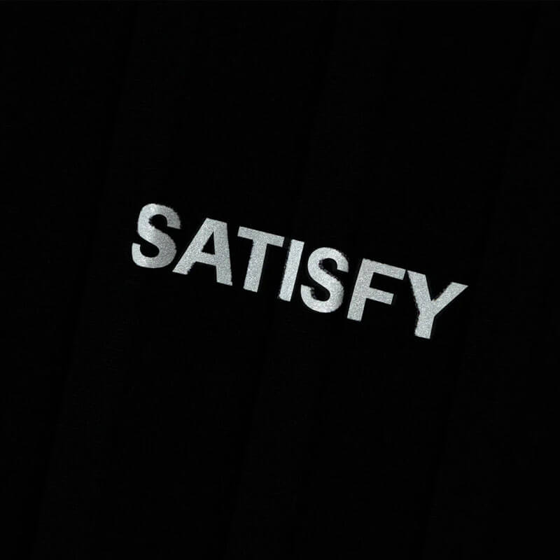 Reflective SATISFY logo and stealth-reflective ©SATISFY print