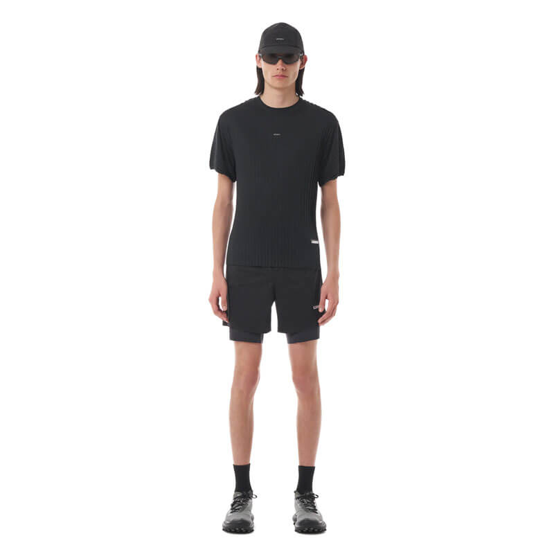 SATISFY® AuraLite™ Pleated T-Shirt – Black: Motion and heat meet air and flow. 112 grams of pleated super-lightweight AuraLite™ from Japan. Engineered folds reduce skin contact creating channeled cooling. For exploration without friction.