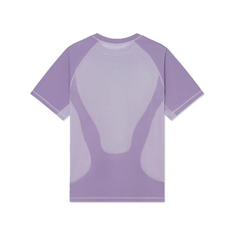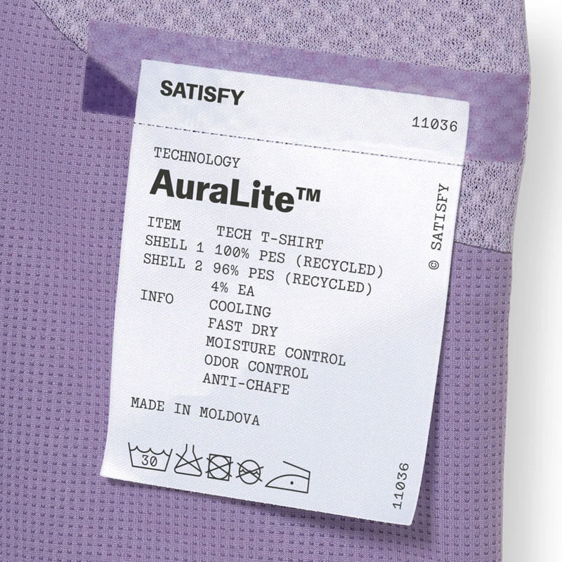 SATISFY® AuraLite™ Tech T-Shirt – Purple Sage: Eengineered for high-intensity efforts, this short sleeve tee is incredibly soft and lightweight, with micro-perforations for increase breathability and strategically placed mesh-mapped panels for optimal cooling. Constructed from a recycled AuraLite™ Tech knitted fabric from Japan and mesh panels from Italy. AuraLite™ Tech is anti-wrinkle, anti-snagging, provides superior moisture management and breathability.