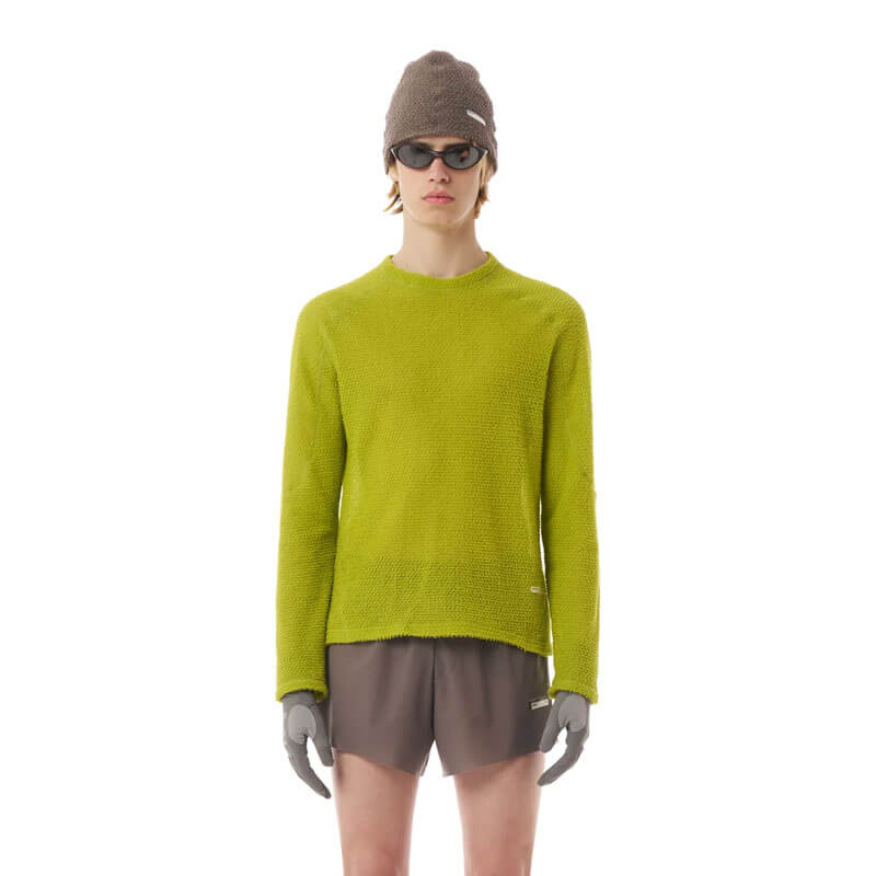 SATISFY® FuzzFleece™ AD Long Tee – Grenoble Green: When chill sharpens, warmth steadies. 108 grams of FuzzFleece™ AD protection. Adaptive insulation for unpredictable explorations.
