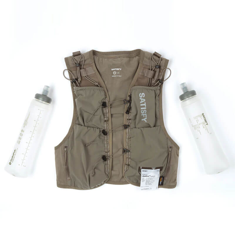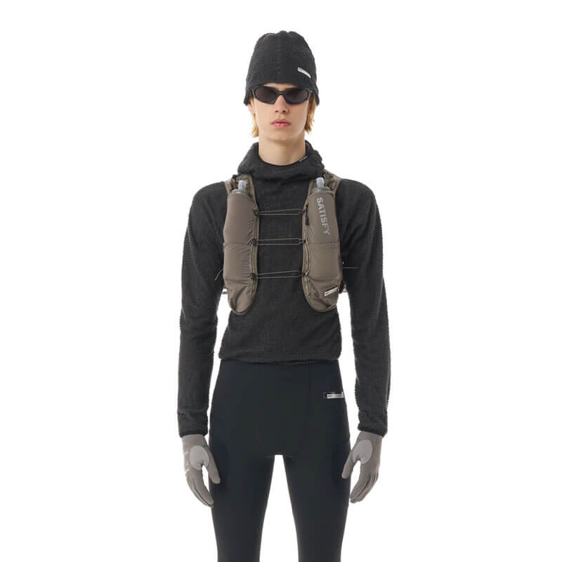 SATISFY® Justice™ Cordura Hydration Vest 5L – Falcon: 5L hydration vest for trips of long duration. Engineered to offer maximal personalization in function and fit. Constructed with Satisfy’s proprietary Justice™ fabric and reinforced with Cordura®, for ultimate comfort and durability. This hydration vest is durable with multilinear stretch to accommodate dynamic movement and is comfortable even against bare skin. With 5L of storage capacity and a versatile 8-pocket system, this piece of Satisfy equipment will sustain you on trips of long duration and ultra endurance events.