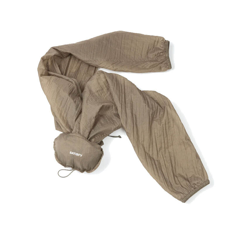 SATISFY® Rippy™ Modular Windbreaker – Shiitake: When weather turns, form follows. 93 grams of lightweight Rippy™ ripstop mesh for varied exploration. Modular protection for elemental adaptation.