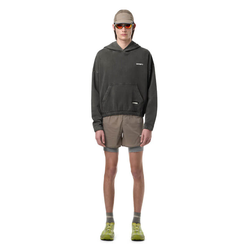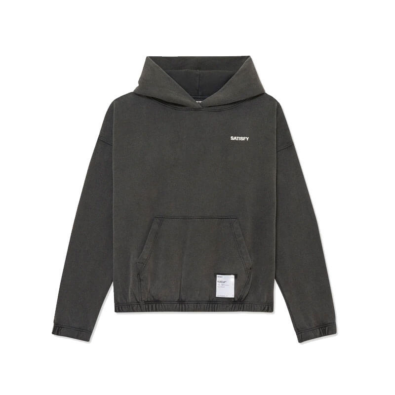 SATISFY® SoftCell™ Hoodie – Aged Black: Our SoftCell™ Hoodie with a retro fit for post-run relaxation. Designed for comfort for the comedown from all mind-altering activities.