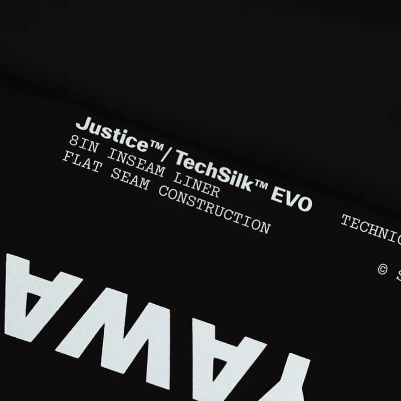 - Anti-chafe 8” Justice™ Coldblack® liner (cooling, silky soft, fast dry, moisture control, 4-way stretch) technical silk