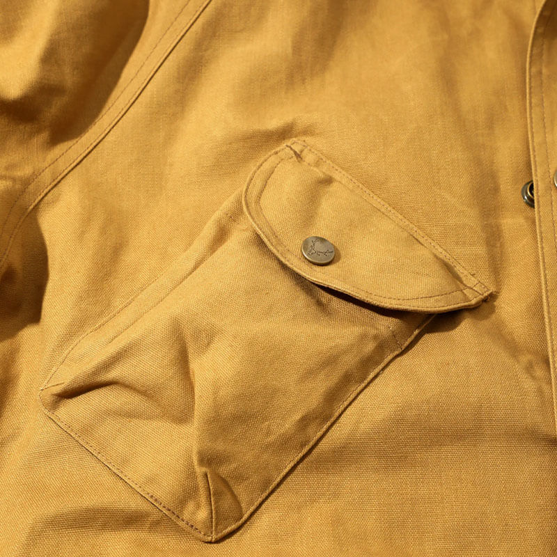 SOUTH2 WEST8 Carmel Coating Coat – Mustard: This Carmel coat is a long version of the classic jacket that has been available since the brand’s inception. It features a relaxed, wide silhouette and a diagonal pocket on the right chest. The hood is tucked into the stand-up collar, giving it classic yet functional outdoor details.