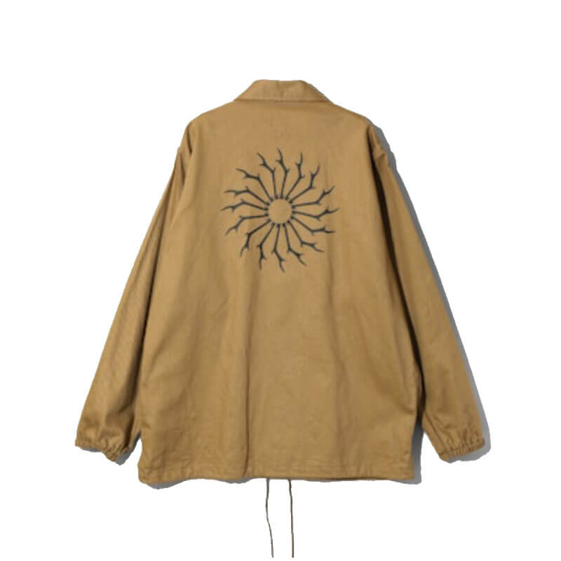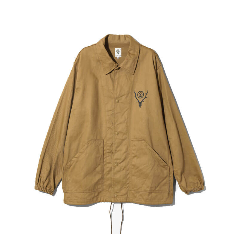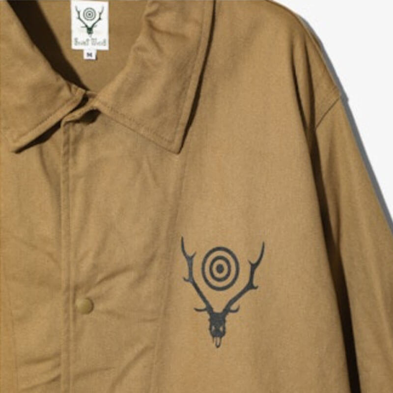 SOUTH2 WEST8 Coach Jacket – Khaki: South2 West8 reimagines a sportswear icon with this coach jacket, which features a contrasting stag’s head logo at the chest. Classic collar and snap button closure complete the design.