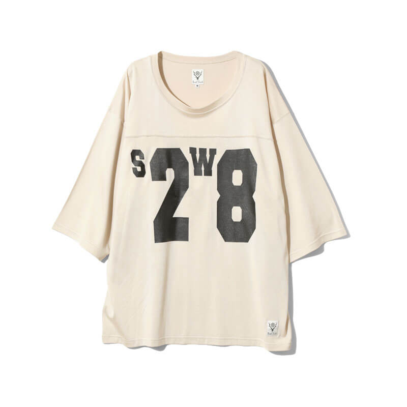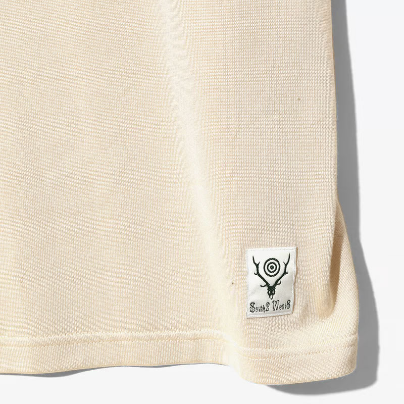 SOUTH2 WEST8 Hockey Tee – Ivory: Introducing a new hockey shirt with a wide open neck, a unique switch around the yoke, a wide fit silhouette, and a balanced five-piece sleeve. The drape made from a cotton/rayon blend gives it a vintage feel.