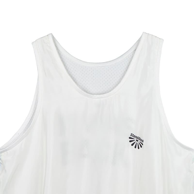 STAND ALONE 3ways Reversible Tank Top – White: Sleeveless top that can be worn on both sides and front and back. Each panel features a different print and as a layering piece, it can be used as a variety of styling items. Included in the last FW23 delivery, this STAND ALONE 3ways Reversible Tank Top – White features: