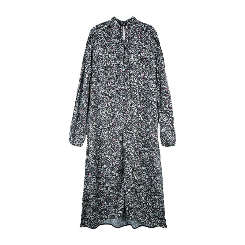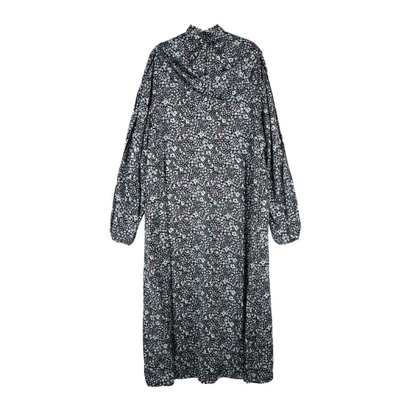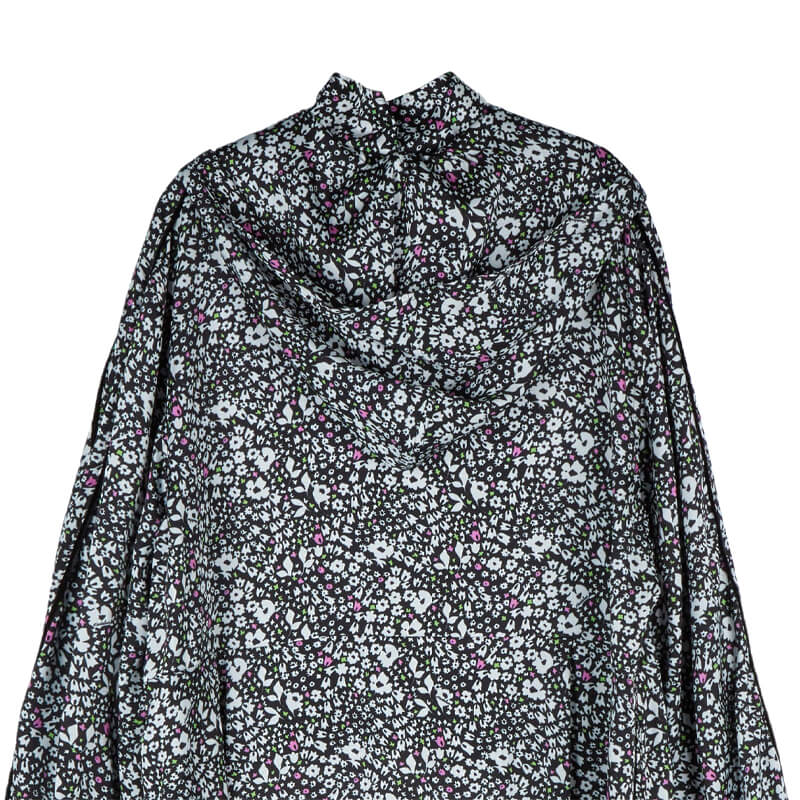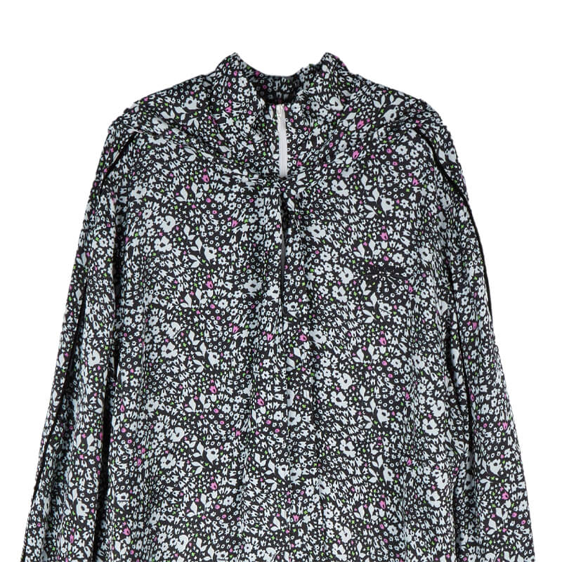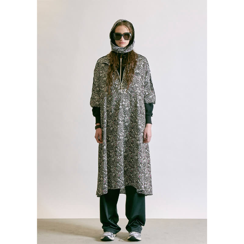 STAND ALONE Floral Tracksuit Dress – Black: Raw-print rayon half-zip dress. With a relaxed fit and length that covers the knees, features sideline pockets and a detachable scarf hood. Velvet piping detail on front zipper and both side sleeves and Standalone logo printed on front chest complete the design. Included in the last FW23 delivery, this STAND ALONE Floral Tracksuit Dress – Black features: