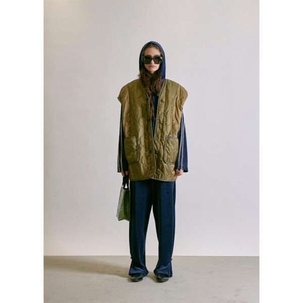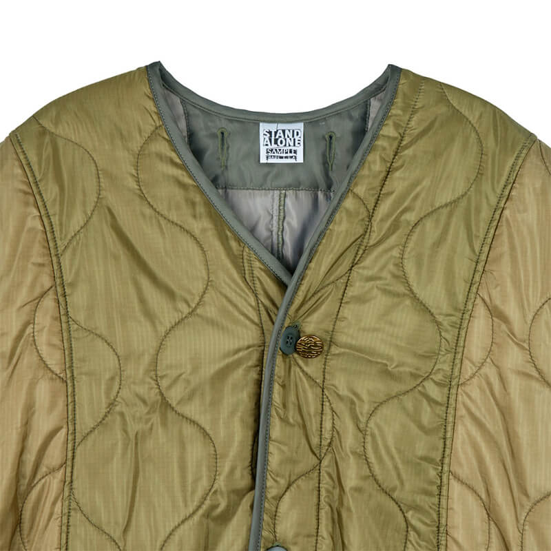 STAND ALONE Military Quilted Vest – Khaki: Sleeveless top that can be worn on both sides and front and back. Each panel features a different print and as a layering piece, it can be used as a variety of styling items. Included in the last FW23 delivery, this STAND ALONE Military Quilted Vest – Khaki features: