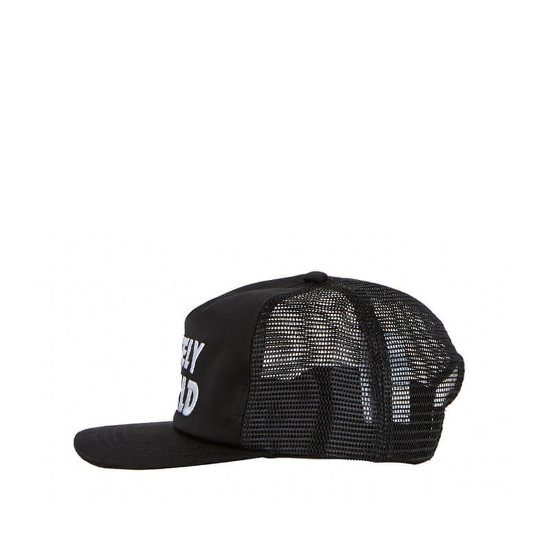 STAND ALONE Mystely World Trucker Cap – Black: Trucker cap with seasonal ‘Mystely Word’ on front. This STAND ALONE Mystely World Trucker Cap – Black is part of Spring-Summer 23 collection and features: