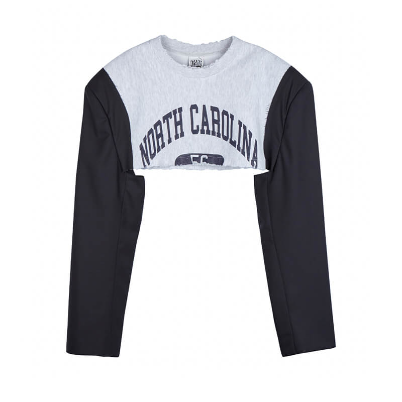 - Crop top with blazer sleeves