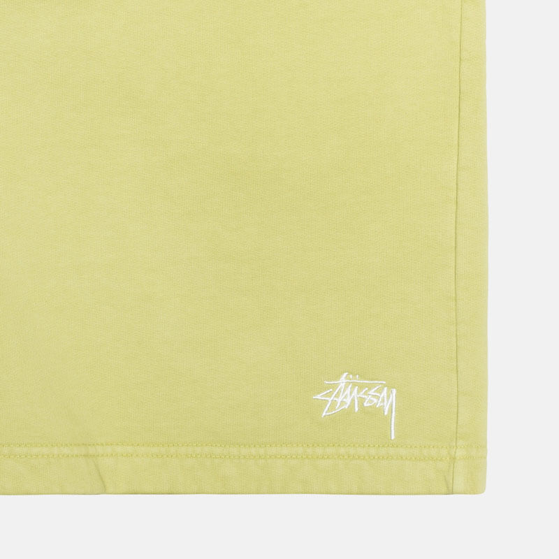 STUSSY Stock Logo Short – Pale Green: Garment dyed midweight fleece sweatshort. This STUSSY Stock Logo Short – Pale Green is included in Californian brand’s Summer23 collection and equipped with: