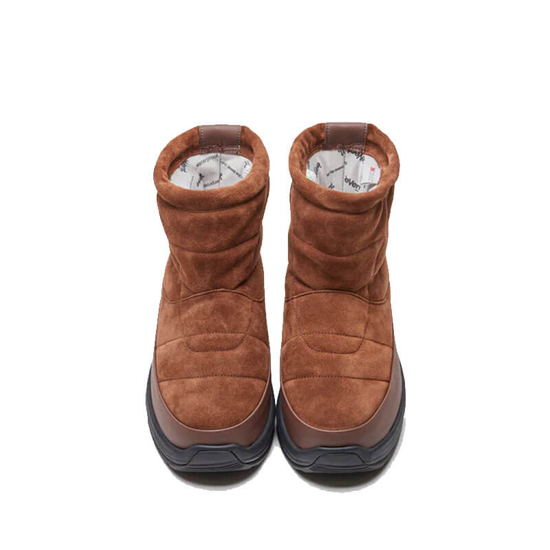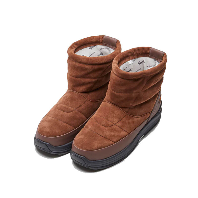 SUICOKE Bower-Sev – Brown / Black: An icon of the SUICOKE line, FW23 sees the BOWER model updated with a luxurious suede upper, shown here in a rich, deep brown colour way. Featuring waterproof eVent lining, our original ‘RUNNING’ outsole and a lightly padded upper, the shoe boasts a breathability and warmth designed to beat the elements.