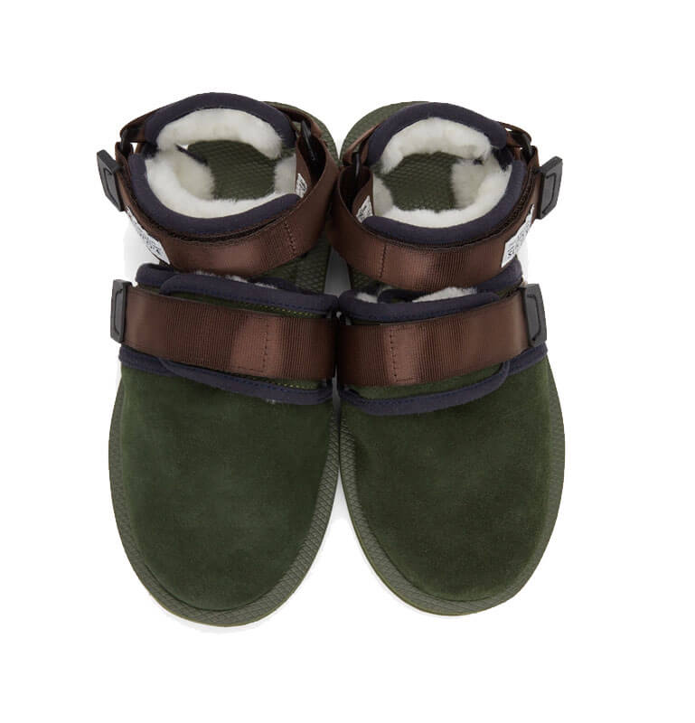 Composition & materials: Upper Shell: Suede Leather – Lining: Mouton – Footed: EVA Antibacterial – Sole: Suicoke outsole