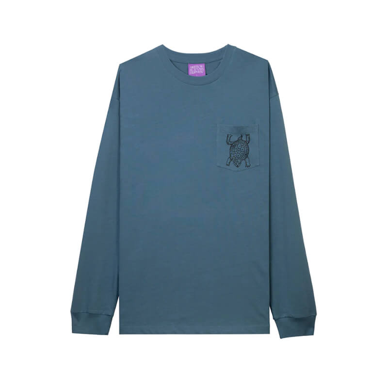 T.I.M.E. Peace Pocket LS Tee – Indigo: Long sleeve tee crafted from soft organic cotton and featuring oversized printed graphic across the back and front chest pocket with printed graphic. Included in the very first delivery of Turtle Island Meditation Equipment, this T.I.M.E. Peace Pocket LS Tee – Indigo is equipped with: