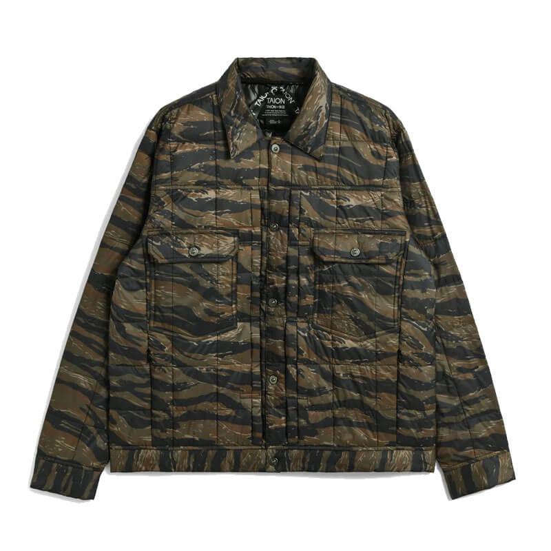The TAION Down Work Jacket – Tiger Stripe has a simple and timeless minimal design that has been included in the last Taion’s FW24 delivery and features: