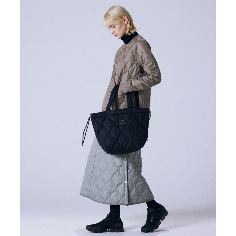 The TAION Military Down Tote Bag M – Black has a simple and timeless minimal design that has been included in Taion’s FW23 collection and features:
