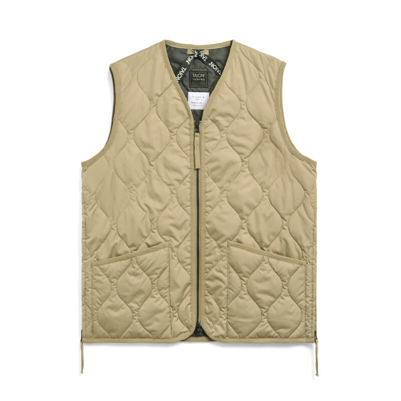 TAION Military V-Neck Vest – Coyote: Japanese brand Taion’s line-up is brimming with ready-to-wear outerwear – and this green vest is one you can wear season after season. It’s made from a long-lasting fabric, cut to a regular fit and comes padded with down – for added insulation and warmth – whilst military inspired pockets sit at the front to complete the look. The Military Zip V-Neck Vest – Coyote has been included in Taion’s FW23 collection and features: