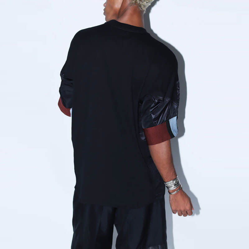 TOGA ARCHIVES Cotton Jersey Tee – Black: Toga Pulla adds an avant-garde edge to your everyday essentials with this short sleeve tee. Here, the classic cotton style is adorned with contrasting and exaggerated sleeves for an understated, yet timelessly chic, elevation. Included in the last Spring-Summer23 collection, this TOGA ARCHIVES Cotton Jersey Tee – Black features: