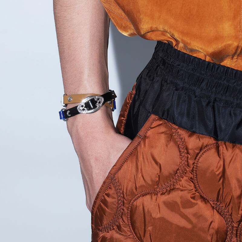 TOGA ARCHIVES Double Leather Bangle – Mix: Add a sophisticated touch to any outfit thanks to this double leather bangle featuring a connected design. Crafted from soft cowhide leather and complete with western style details on the buckle, you can also enjoy it as a choker. Included in the last FW23 collection, these TOGA ARCHIVESS Double Leather Bangle – Mix features:
