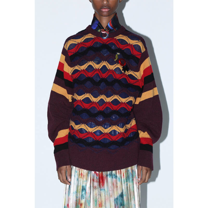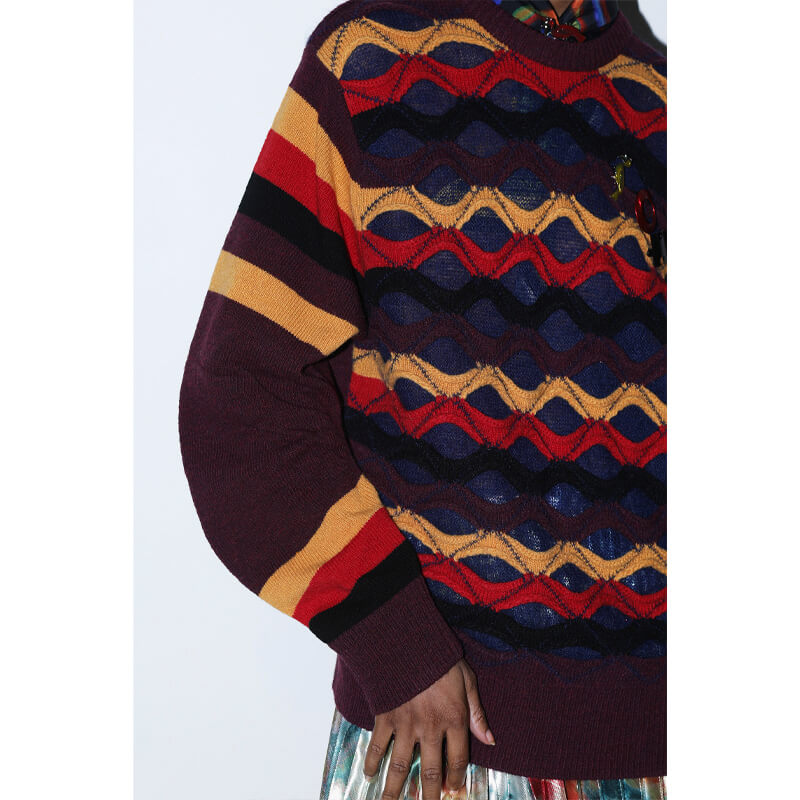 TOGA ARCHIVES Slit Border Knit Pullover – Dark Red: Toga Pulla’s proposal blends Western fashion with Japanese craftsmanship. Included in the last FW23 collection, this TOGA ARCHIVES Slit Border Knit Pullover – Dark Red features: