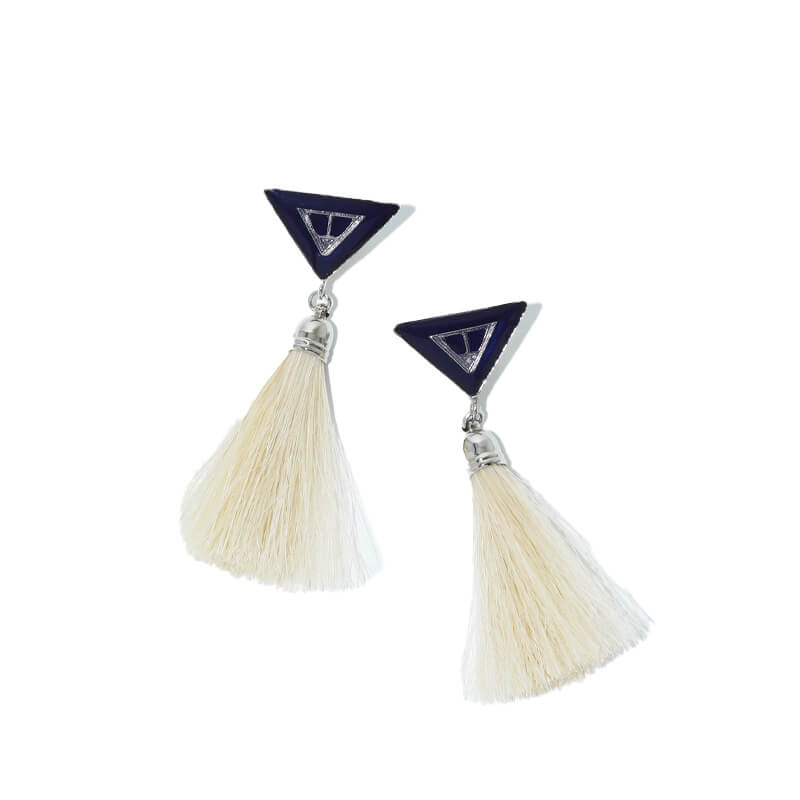 TOGA ARCHIVES Triangle Fringe Earrings – Green: Add a sophisticated touch to any outfit thanks to these clip-on triangle earrings from Toga Pulla. Crafted from alloy, the pair feature green triangles at the studs, then are complete with neutral horsehair fringing for added detail. Included in the last FW23 collection, these TOGA ARCHIVESS Triangle Fringe Earrings – Navy features:
