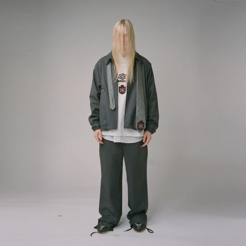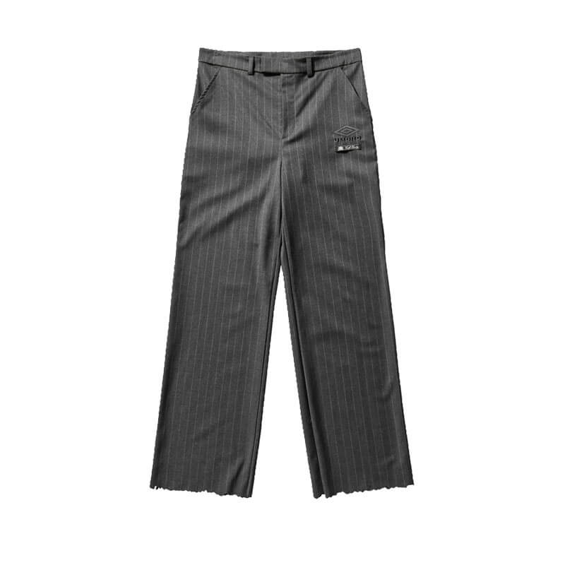 UMBRO Formal Pinstriped Pants – Dark Grey: For Autumn/Winter 2025, long-term partners Slam Jam and Umbro unveil a bold new collection, seamlessly blending the distinguished tailoring traditions of Britain and Italy with the dynamic energy of sportswear. “Cult Unity” serves as the defining motif, celebrating the fusion of these two iconic cultures.