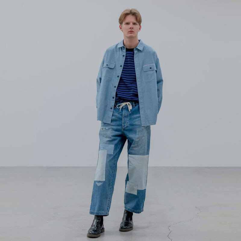 UNIFORM EXPERIMENT Parchworked Wide-Fit Jeans – Indigo