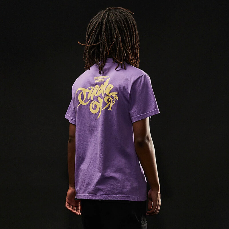 UXE MENTALE Theater of Reality Tee – Washed Purple: Custom dyed and washed 6.5 oz tee with seasonal screenprint on both front and back. This Tee features: