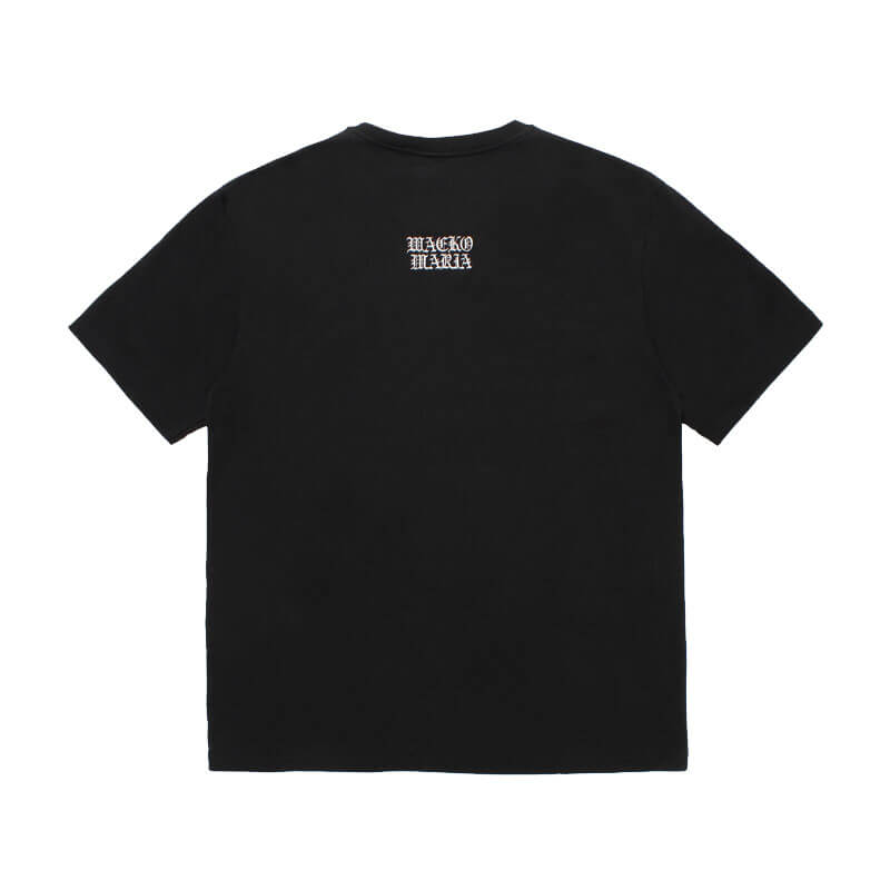 WACKO MARIA Death Row Records Tee – Black: Heavy weight short sleeve tee with graphic logo embroidered on back and graphic printed on sleeves. Pre-washed garment to avoid shrink.