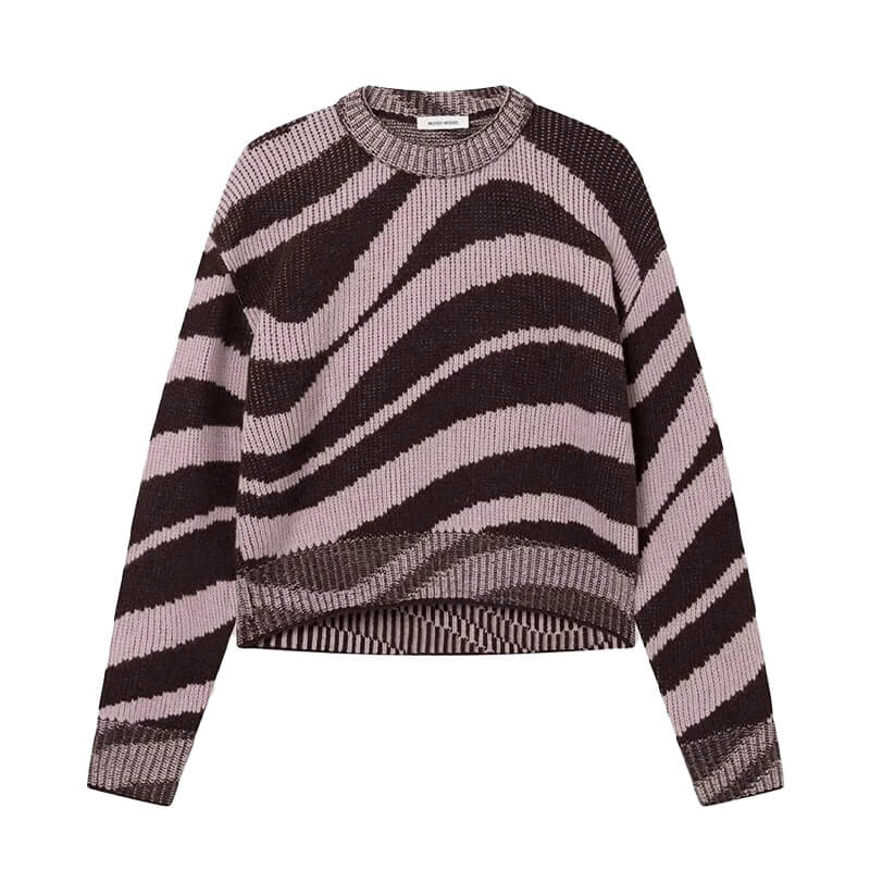 WOOD WOOD Jimmy Wavey Stripe Jumper – Light Purple: Made from 100% merino wool, this jumper features eye-catching wavey stripes. With an open back and ripped hems, it’s a contemporary addition. Included in the lastest FW23 collection, this WOOD WOOD Jimmy Wavey Stripe Jumper – Light Purple feature: