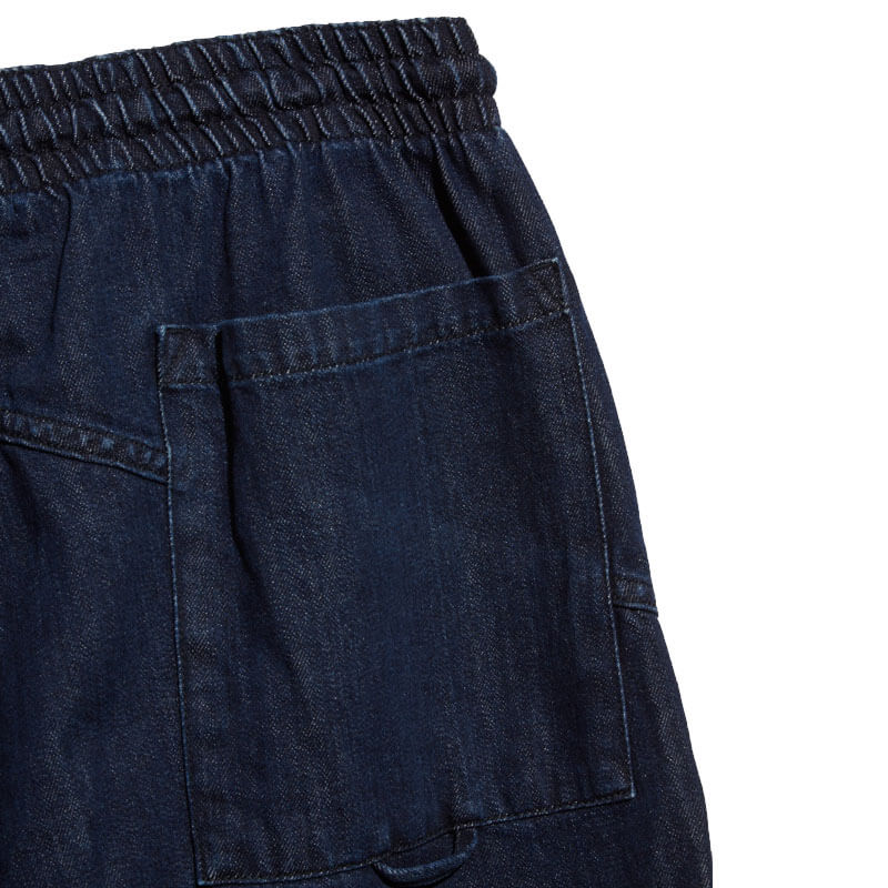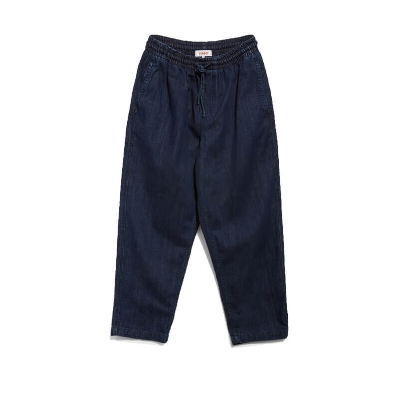 YMC Alva Skate Trouser – Indigo: Relaxed fit drawstring trouser crafted in stone washed organic denim cotton.