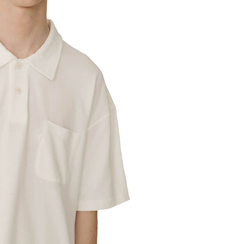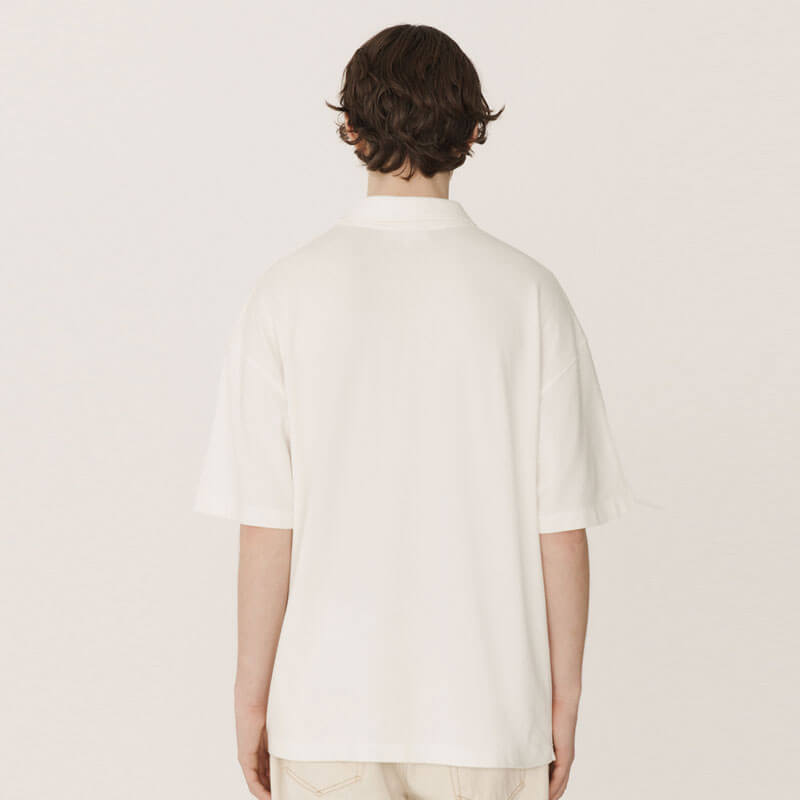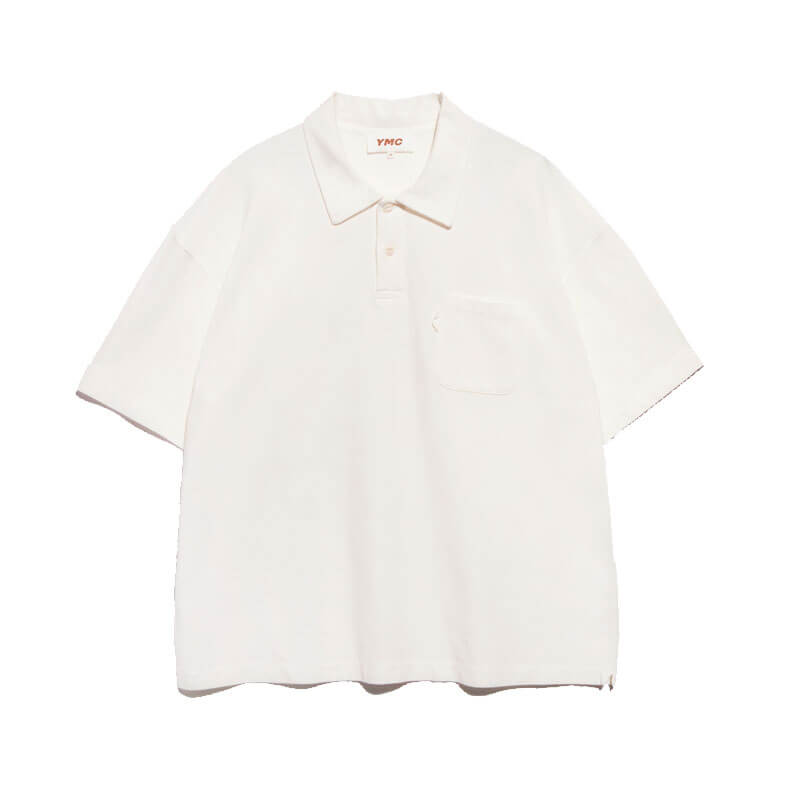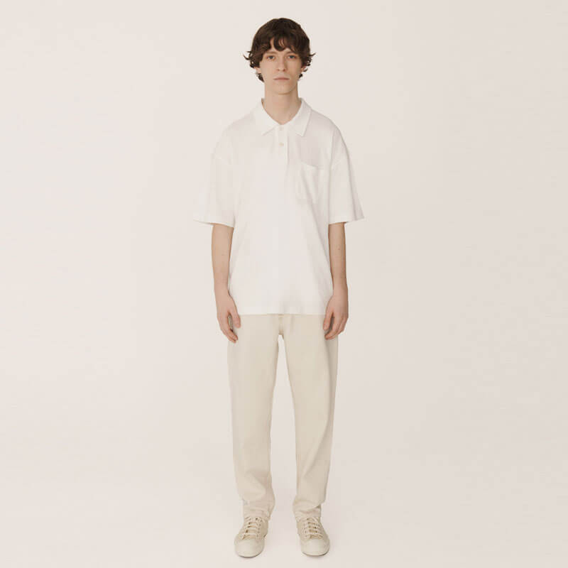 YMC Earth Polo Tee – White: An oversized take on classic polo styles, cut with a button-up collar from pure organic cotton. YMC Earth is the brand timeless collection of staples, sustainably constructed using natural, organic or recycled materials.