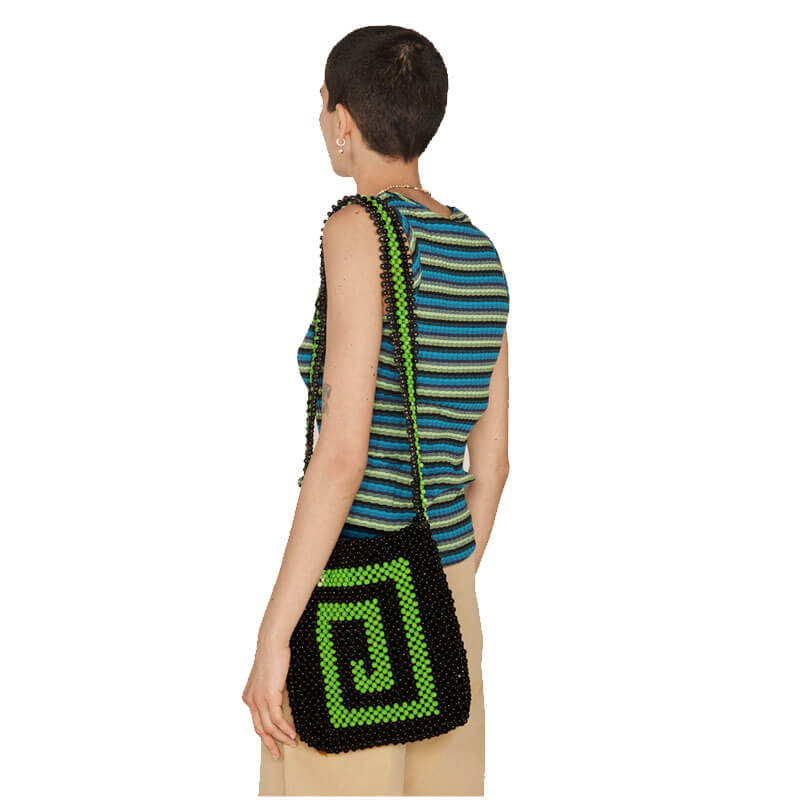YMC Pilgrim Bag – Black / Green: Beaded handmade crossbody bag. Included in the last Spring-Summer24, this YMC Pilgrim Bag – Black / Green features: