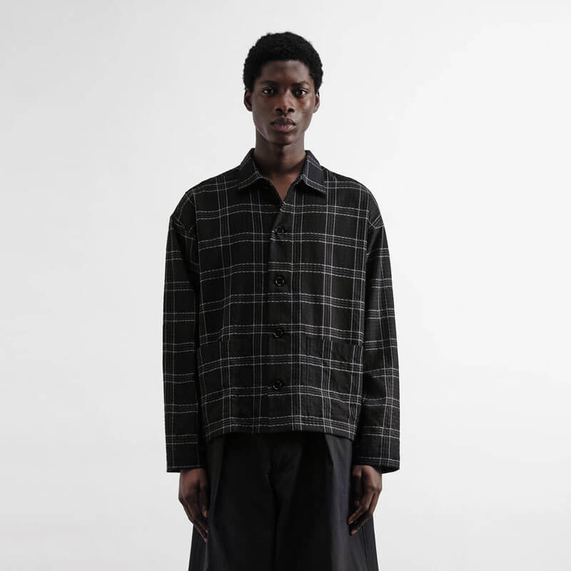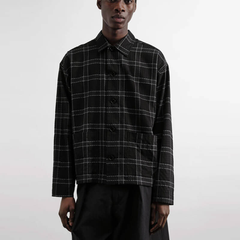 YMC PJ Overshirt – Check Black / Grey: Longsleeve shirt crafted in a seersucker cotton plaid fabric.