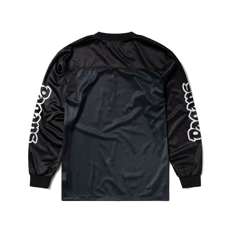 ARIES Cult Leader Airtex LS Tee – Black: Unisex long sleeve football jersey made from a mix of shiny polyester airtex mesh & single jersey. With ‘Cult of Aries’ team graphics plastisol printed on the front and sleeves.