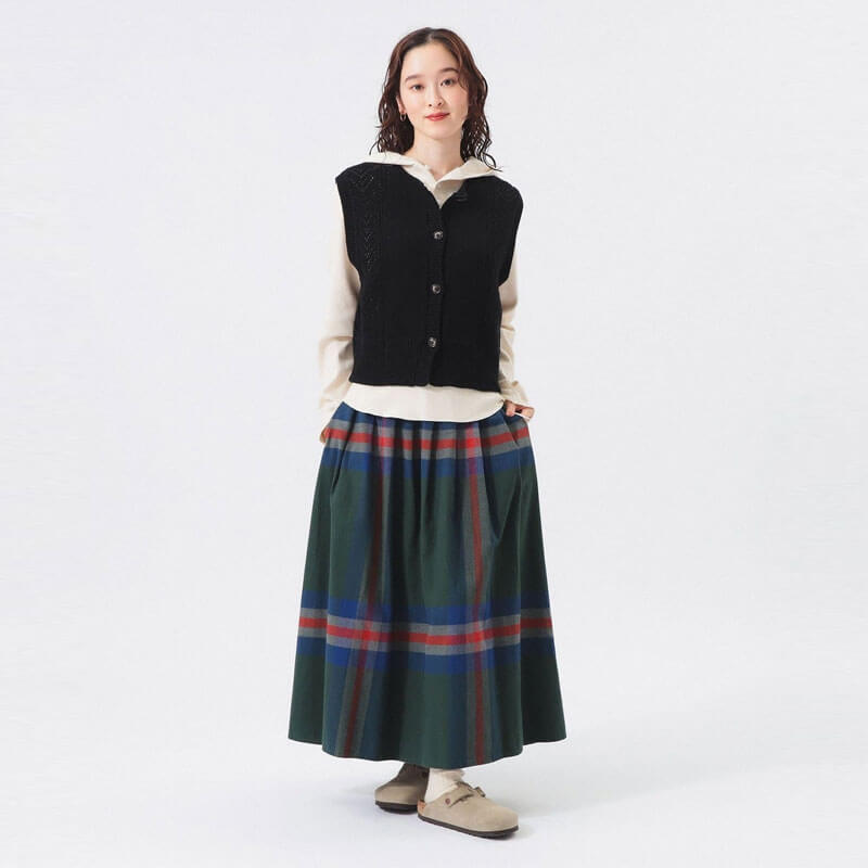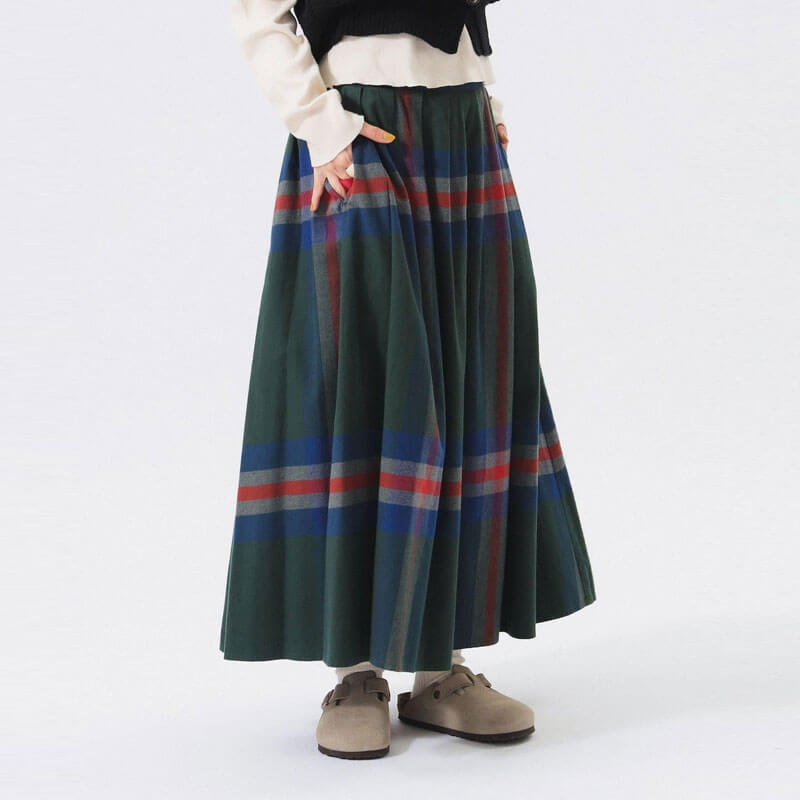Included in the Fall25 delivery of the Japanese brand for THEROOM, this BEAMS BOY Big Tartan Skirt – Dark GreenΒ features: