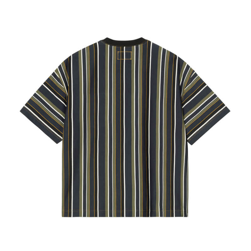 CARHARTT WIP x NICHOLAS DALEY Stripes T-Shirt – Blue: For Fall/Winter 2025, Carhartt WIP has collaborated with designer Nicholas Daley to create a collection focused on Daley’s core values of community, craftsmanship and culture, while nodding to his own Jamaican and Scottish heritage. The Carhartt WIP x Nicholas Daley Poster T-Shirt is made in a boxy loose fit from midweight cotton jersey. A large graphic print appears at the back, inspired by Daley’s parents’ ‘Reggae Klub’ nights in the late 70s. The item is also detailed with contrast stitching throughout. A co-branded Square Label appears on the chest.