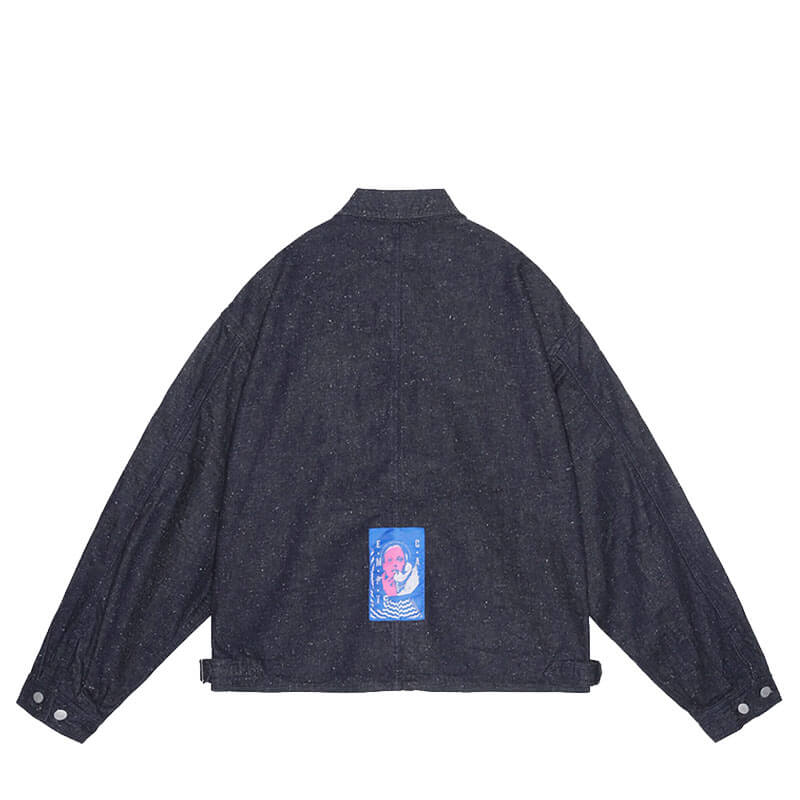 CAV EMPT NEP Denim Trucker Jacket – Indigo: Constantly reinventing themselves with visual concepts that combine music, dystopia, and experimental streetwear, Cav Empt represents the pinnacle of the modern Japanese scene. This trucker jacket delivers a refined take on utilitarian streetwear with its boxy silhouette. Crafted from 12oz napped cotton denim, this button-up jacket features a classic collar and graphic patch on back, offering both comfort and a polished edge that aligns with Cav Empt’s design ethos.