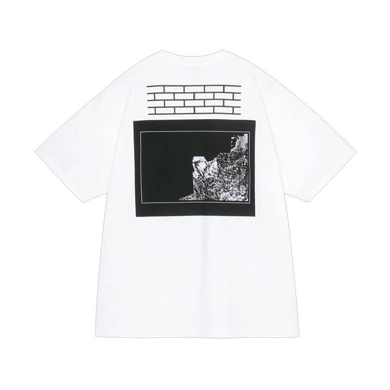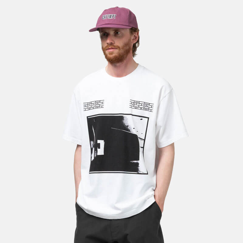 CAV EMPT SPEC TGT 1 T – White: Short sleeve graphic tee crafted in a lightweight, pre-washed cotton for a structured yet soft feel. Features a large screen-printed graphic on front and back and CAV EMPT branding across the front shoulders.
