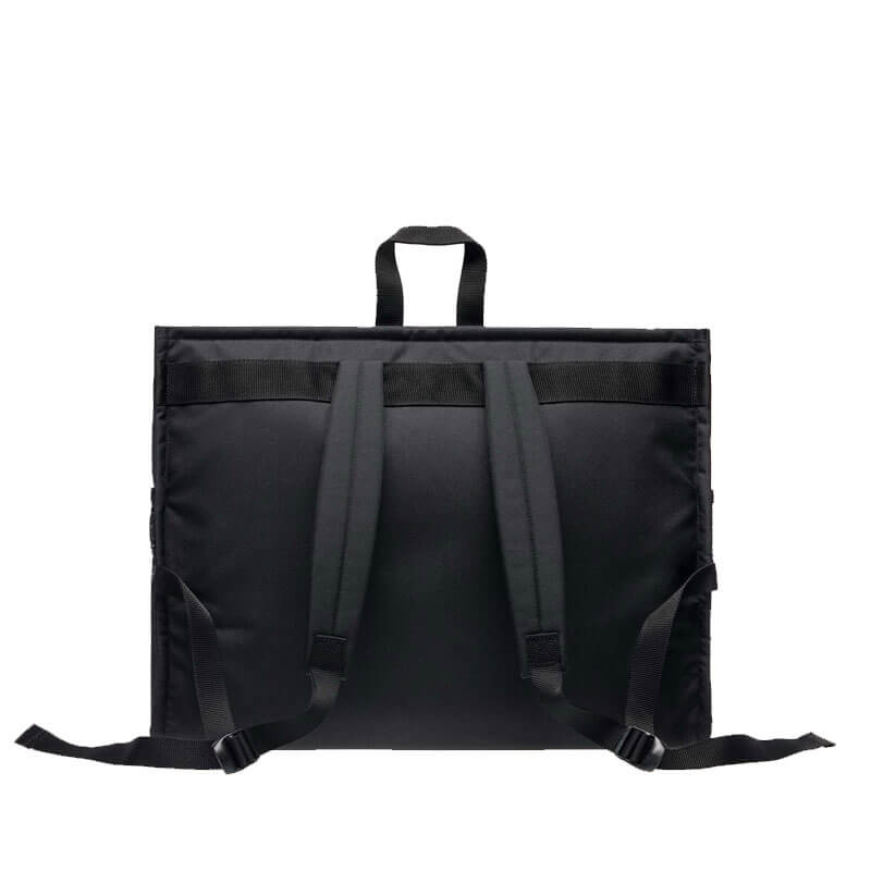 EASTPAK x TELFAR Large Shopper – Black: The iconic Large Shopper in tactical canvas with woven hand straps, removable/adjustable padded shoulder straps, and adjustable backpack straps on the reverse side. Exterior features embossed Telfar logo, top zipper closure, and side mesh pockets. The interior features a zipper pocket and a padded laptop compartment. The EASTPAK x TELFAR Large Shopper features: