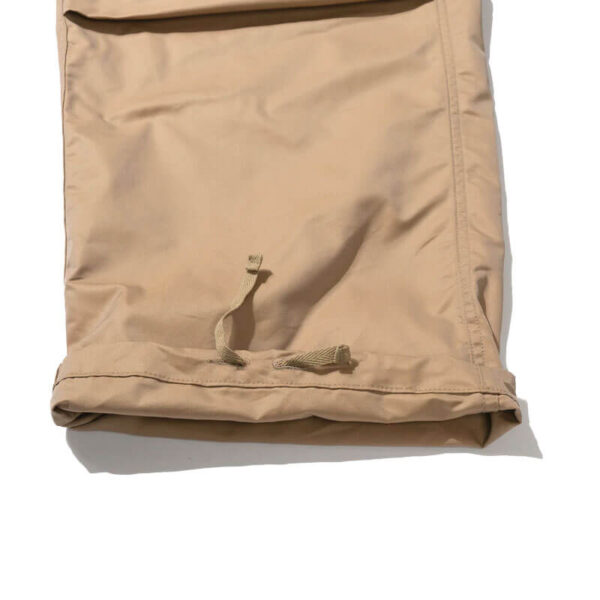 ENGINEERED GARMENTS Over Pant – Khaki Iridescent: The “Over Pant” is based on the shell pants worn by 20th century American troops in freezing conditions, tuned up for the Engineered Garments lastest collection. It is the M-65 Cold-Dry Arctic White Snow Camouflage Trousers, engineered to replace the M-1951 Arctic Trousers, that serve as the primary inspiration for the Over Pant. Meant to layer over drawers and trouser liners, the original version’s role as the top layer of the set means that it is both lightweight and voluminous enough to cover the lower layers. From an aesthetic standpoint, the lack of side pockets – a sort of unbranded cargo pant – and unique profile from its baggy knee pleats and bloused hem make for a singular look.