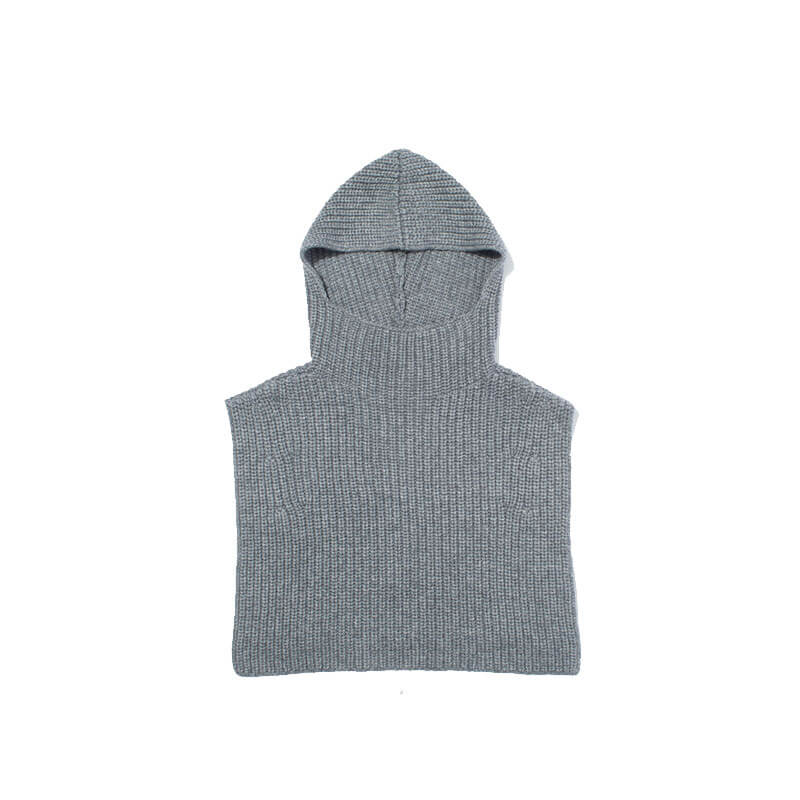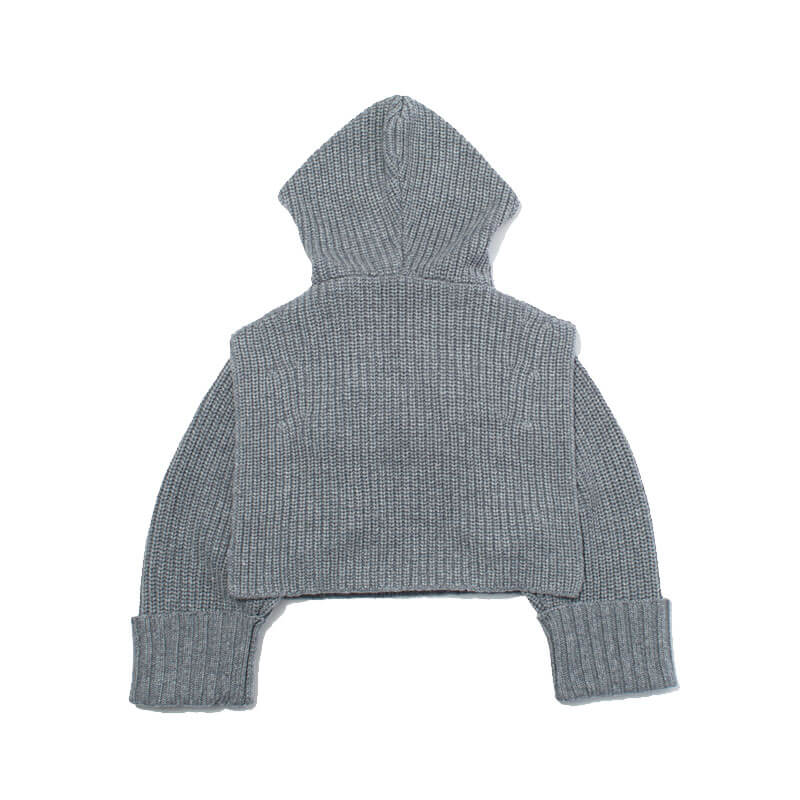 F/CE. Modular Layer Knit – Charcoal: Modular layered knit that combines sleeves and a knitted hooded vest. The sleeves and vest are independent and can be worn together or separately.
