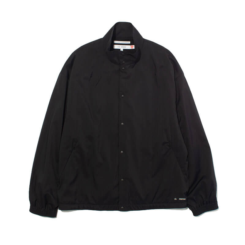 F/CE. Pertex Quantum Protect Blouson – Black: High-performance stand collar type blouson made of PERTEX QUANTUM. PERTEX QUANTUM, which is lightweight, durable and has excellent insulation properties, is used for the outer fabric, while PRIMALOFT, which is double-sided brushed, is used on the inside. The functionality of PERTEX QUANTUM is combined with the breathability and warmth retention of PRIMALOFT to create a simple shirt blouson that can be worn for a long season. Darts on the shoulders and hem create a simple yet three-dimensional silhouette. The sleeves have a bomber jacket-like volume.
