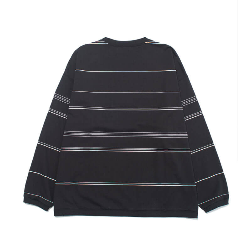 F/CE. Re Logo LS Border Tee – Gray: Multi-striped long-sleeved T-shirt made from recycled yarns, which are made from scraps of cuttings and fabrics that are no longer needed in sewing factories, recycled and spun into the required yarns. The yarn is made from 100% upcycled scraps of cuttings, which are environmentally friendly, water-free, chemical-free and have minimal carbon dioxide emissions. No dyeing involved, so the focus is on total sustainability.